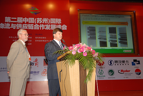 中国经济的高速发展及基础设施的不断完善,为现代物流业的发展提供了广阔的市场。2008中国国际物流科技展览会吸引了来自德国、美国、中东、瑞士、西班牙、新加坡及国内的中外参展企业近300家,分属物流装备、物流科技及物流服务三大领域,展出面积1万平方米,约合国际标准展位400个,吸引了近万人次的专业观众前来参观。5月23日上午,各级政府部门领导、国家特邀商务使节代表和客商、相关协会商会领导、参展单位和参加论坛代表、新闻媒体等约200人共同出席了开幕式,嘉实多全球商用车辆油品市场经理John Ambrose先生作为唯一应邀的企业代表在开幕式上致辞。他表示"作为拥有过百年历史的润滑油专家,嘉实多一直与全球的商业运输及物流行业有很好地合作关系.对嘉实多而言,不仅仅是提供润滑油,更是为物流行业提供具有创造性的解决方案。"