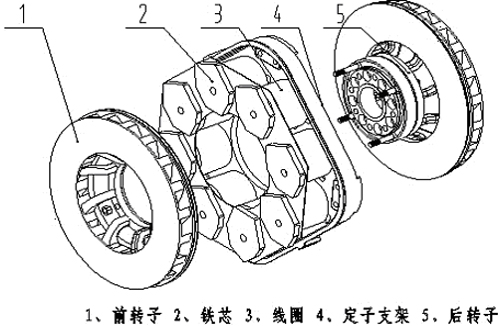 电涡流缓速器的机械结构如图1所示,主要有定子总成和转子总成构成。线圈、铁芯等固定在定子支架上构成定子总成;前、后转子盘通过连接法兰构成转子总成。电涡流缓速器在车辆上使用时,定子总成通过变速箱或后桥等固定在车辆大梁上;转子总成与车辆传动部分连接在一起。转子盘与定子总成的磁轭之间有1.5mm左右的气隙。当需要使用缓速器时,通过控制电路给定子总成的励磁线圈通电,产生磁场;转子总成随车辆传动部分高速旋转切割磁力线,产生反向力矩,使车辆减速。从能量守恒的角度看,使用缓速器时,车辆行驶的动能转化为热能,通过转子将热量散发出去。
