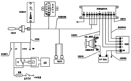 洛阳凯迈电涡流缓速器电气控制部分由气压开关、手拨开关、电源总开关、控制单元、控制电源开关、工作指示灯及线束等组成;控制原理图如图2所示。控制电源开关是控制部分的核心,采用大功率晶体管控制缓速器主机电流的通断。气压开关安装在车架上,与车辆制动系统的气路相连,是采用制动踏板控制缓速器工作的开关。手拨开关安装在驾驶室内,驾驶员可通过拨动手拨开关选择合适的档位单独使用缓速器对车辆减速。工作指示灯安装于仪表板上,用以显示缓速器的工作状态。电源总开关一般装于电瓶仓内,在检修缓速器或缓速器出现故障时可临时关闭缓速器。控制单元接受车速、ABS等车辆状态信号,判断缓速器是否符合工作条件;当车速达到一定值(一般为3~10Km/h)且ABS未工作时,缓速器即处于待命状态,此时拨动手动开关或踩制动踏板即可使缓速器工作。
