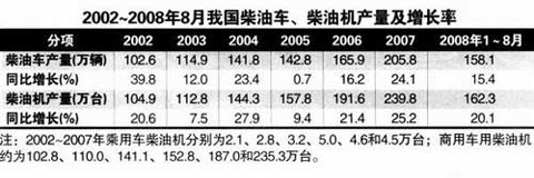 2007年,汽车用柴油机生产239.8万台,扣除一汽-大众生产捷达轿车用柴油机(18659台)及SUV(23139台)和MPV(2572台)用柴油机及微客用柴油机384台,全年共生产商用车柴油机235.3万台,同比增长23.8%。2007年共生产汽车汽油机601.0万台,其中商用汽车用汽油机约48.77台,同比增长13.0%。
