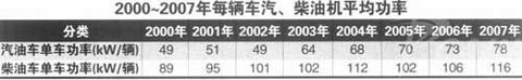 ④发动机动力性不断增大,对变速器、离合器扭矩要求也随之加大。今后还会逐渐增大汽车动力。我国汽油车单车功率由2000年的49kW增至2007年78kW,增长59.2%;柴油车单车功率由2000年的89kW增至116kW,增长30.3%。