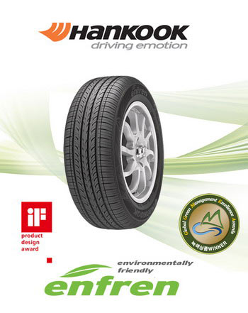 enfren是韩泰轮胎最新推出的环保节耗型轮胎,今年4月北京国际车展中首次在中国亮相,曾一度引起媒体和消费者的广泛关注。据韩国汽车技术协会公布的测试数据显示,enfren可以降低轮胎滚动阻力达21%,从而使汽车燃油效率提高2%。Optimo 4S因在节省燃料和降低噪音等方面的杰出表现,于今年5月获得由德国联邦环保部颁发的“蓝色天使”称号,成为全球唯一一款获此殊荣的全季轮胎。