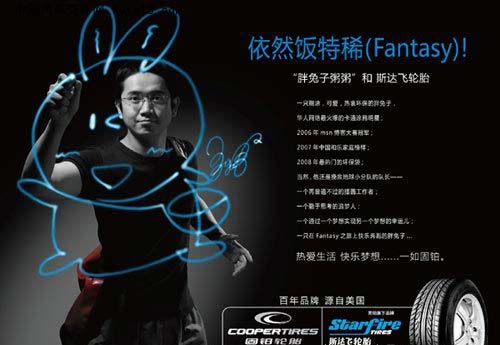 近日,一只背着小红书包满脸傻笑的兔子越来越多地走入大家的视线,msn上跳出的可爱flash,qq的漫画表情等都颇得年轻人欢心。这只可爱兔子的原型,正是当红网络插画家,全球替换轮胎专家固铂轮胎(CooperTires)合作伙伴粥粥。