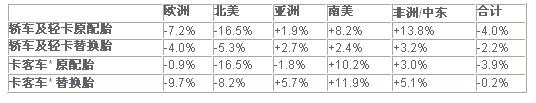 • 成熟市场和新兴市场的替换胎市场需求急速萎缩