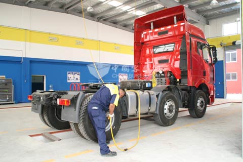 大卡车开进米其林卡客车专业店内享受服务