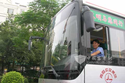 岛城的女公车司机成了一道亮丽的风景线