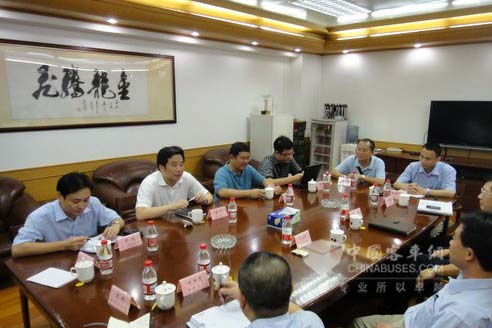 晏平(右三)与厦门金龙联合汽车公司领导座谈
