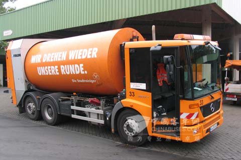在慕尼黑国际环博会的“卡车现场作业演示”活动中,参观者将受邀参观一款装配有艾里逊3000P系列变速箱和Zöller车身的奔驰Axor垃圾收集车进行现场演示。该车连续演示数日,观众可从看台上观看。