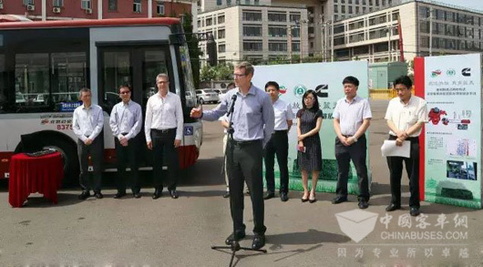康明斯集团董事长兼首席执行官兰博文先生在公交车软件升级仪式上讲话