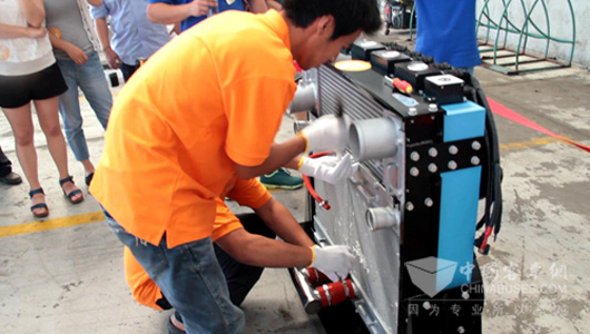 据记者从主办方那里了解到,参加苏州赛区的六支队伍都来自企业一线,对公交车客车维修非常熟练。而且在进行最终角逐之前,各参赛单位都进行了初步选拨。不过,在比赛开始前的采访中,所有参赛队对换装水箱只用5分30秒都感到不可思议。比赛开始之前,驿力科技对所有参赛队进行了培训,介绍了活动规则、比赛所用的i智冷二代产品和水箱换装步骤。之后,各参赛队抽签决定出场顺序,并组建了自己的拉拉队。