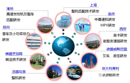 潍柴全球协同研发平台 潍柴坚持全球引才与自主培养并举,引进人才与营造环境并重,构筑了全球人才聚集高地。组建了董事长牵头的专业化招聘团队,多次到欧美顶尖人才聚集地,引入技术领军人才。