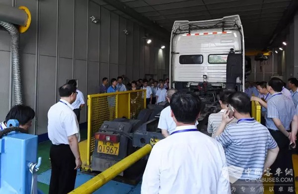 在研究院实验中心,严鉴铂董事长简要介绍了各种测试台架和实验设备。他说,依靠世界一流的实验和制造装备,法士特设计生产的产品科技含量、性能品质不断提升,部分指标已经达到或超过国际水平。面向“十三五”,法士特以国家“一带一路”和“中国制造2025”为指导,确定了信息化、智能化“两化”推进和“5221”战略目标,不断提升信息化管理水平,不断推进智能化生产方式,不断拓展企业国际化发展进程,努力开创企业国际化、多元化、高端化发展新格局。