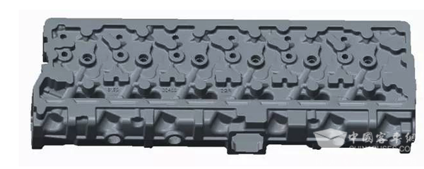 WP9H气缸盖三维图 “这类铸件在铸造过程中极易出现变形、断芯和芯砂烧结等情况,造成生产过程中效率低、尺寸一致性差等问题,这是需要我们重点攻克的难点之一。” 铸造工程师说道。