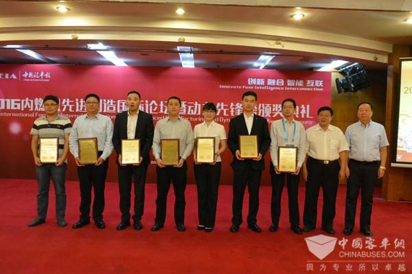 YC6K入选“2016动力先锋榜”,玉柴代表上台领奖