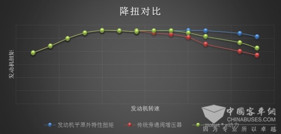 Holset® e动力与同型号传统旁通阀增压器相比,高原高速扭矩提升近10%,对于整车而言,高原动力性明显提升,拉货更多,平均车速更高。