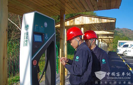 2016年以来,为推动充电站的应用,武夷山供电公司主动对接景区管委会,积极推广充电站的普及建设。同时开启“五加二、白加黑”工作模式,分别在南入口、北入口各建设1座充电站,各8个充电停车位,各配置4台60千瓦直流充电机、2台120千瓦直流充电机,1台630千伏安箱式变压器。16个充电桩采取直流快充模式,完全具备为16辆纯电动车快速充电的能力。人们可以使用特定的充电卡在充电桩提供的人机交互操作界面上刷卡使用,进行相应的充电方式、充电时间、费用数据打印等操作。该充电站还配置了监控采集系统,实现对设备运行状态的实时监控及故障报警,保证了充电站的充电及时率、用电可靠性和安全性。
