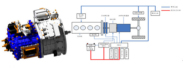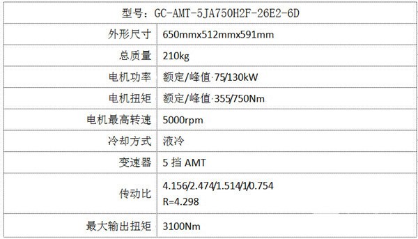 为了进一步满足行业发展和终端用户的实际需求,提升产品的竞争力,绿控公司面向市场精心打造了这款全新高端产品GC-AMT-5JA750H2F-26E2-6D。该产品采用一个电机,AMT、电机、发动机同轴并联,电机与发动机之间为自动离合器;可实现纯电动、常规动力和混合动力等多模式运行。外部采用全铝壳体,变速箱采用双中间轴、细高齿设计,全磨齿加工;无同步器换档,离合器的分离、接合及所有选换挡均由电控系统(THCU)自动控制。经过大量的匹配、标定和测试,通过不断的软硬件改进与升级,该产品各项性能卓越,能够满足各种中、重型商用车辆的使用要求。