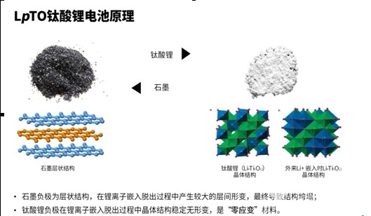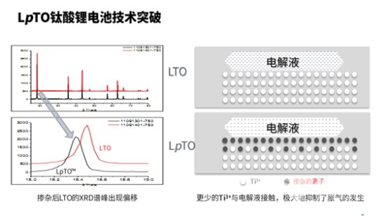 我们把目前世界上主流的一些电池性能做了一些简单的对比,从这张表上我们可以清晰的看到,钛酸锂充电是非常快的,完全解决用户等候充电时间的问题。随着大规模的应用,产业化,规模化之后,钛酸锂的成本也得到了大幅的下调,整个来说产品的综合性和竞争优势大大提升了。钛酸锂最近很热门,我这里简单说明一下,微宏LpTO钛酸锂电池的优异性能是来自于哪里。从分子结构来说,左边的是石墨的粉体,右边是钛酸锂的结构,石墨简单讲就像是一堆撕碎的纸片,它是一层一层的,电池在充放电过程中的过程中,锂离子在这些层状结构中的穿梭会导致石墨层状结构发生坍塌的问题;而钛酸锂最大的优秀之处就是它的结构非常稳定,在八年甚至十年的使用过程中,整个晶体结构都可以保持,属于“零应变”材料。钛酸锂电池这么好,但经过这么多年,为什么它没有得到大规模商业化?其中的原因在于钛酸锂电池胀气的问题,一般的钛酸锂电池在前一两百个循环的时候,就容易发生胀气,胀气以后电池就失效了。微宏通过大量的研究,找到了问题的根源,通过对钛酸锂粉体以及电解液的改性,把这个胀气的难题彻底解决掉了。这是在实验室做的一个微宏LpTO钛酸锂电池寿命的测试曲线,大家可以看到它在6C充放的情况下,可以达到两万五千次以上的寿命。