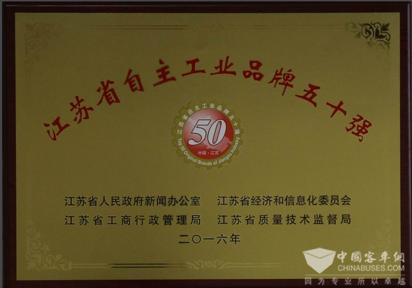 2016年12月,由江苏省政府新闻办、省经信委、省工商局、省质监局联合开展的江苏省“自主工业品牌五十强”宣传活动企业名单公布,常柴股份有限公司等48家企业成功上榜50强。