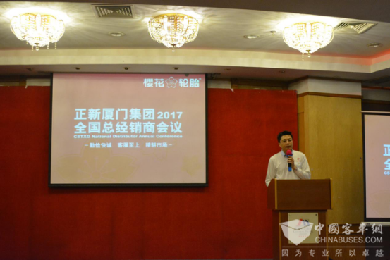 在樱花年会会场,正新厦门集团副总经理许智明博士表示,樱花品牌的发展是集团品牌中长期规划的重要部分,公司历来重视樱花品牌的发展,在资源投入、市场策略部分,会依照发展战略有序规划。让销售樱花的经销商、及渠道客户得到永续的经营利润,让使用樱花轮胎的用户得到优质的产品及服务。