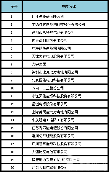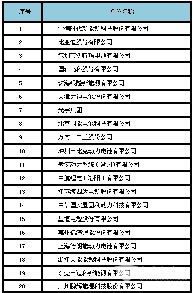 表二、2016年度中国动力锂离子电池销售量20强企业