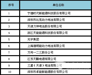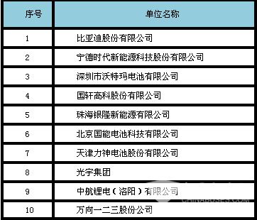 表三、2016年度中国磷酸铁锂动力锂离子电池销售量10强企业