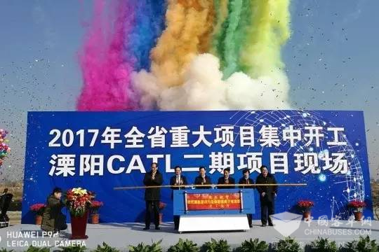 2017年2月12日,江苏溧阳市2017年首批重大项目集中开工现场推进会暨溧阳宁德时代新能源科技有限公司(简称:CATL)二期开工仪式在中关村产业园CATL二期举行。溧阳市委书记蒋锋、市长徐华勤、CATL新厂筹建部经理余波、刘达、徐安乐等领导出席了此次开工仪式。