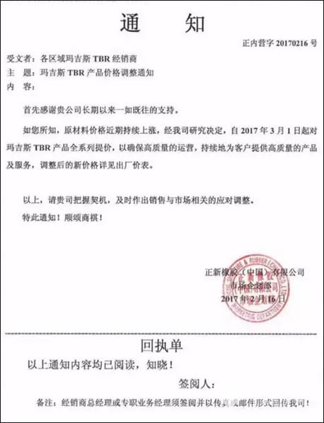 自3月1日起,玛吉斯TBR全系轮胎产品继续提价,新价格以调整后的出厂价格表为准。