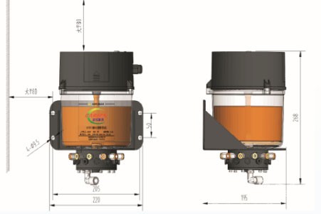 该产品采用直流无刷变频电机,独特的变频驱动电路,电机可靠性高,寿命长,电流仅100mA,功率低连续运转不发热。再者该产品采用粘稠油脂油位检测专利技术,适应0号到2号油脂,油脂少时,提前报警,提醒及时添加油脂,油脂抽空前体制工作并持续报警。此外,产品采用了独有的柱塞泵芯设计,针对不同的润滑点,柱塞式泵芯有六种不同的输出量可供选择,采用不同的颜色编码便于识别。柱塞泵芯内部采用钟表级精密加工和检测技术,阀芯与阀孔高精度配合,输出压力可达12MPa,内部有止回阀装置,宝压性能卓越,能保证润滑终端的压力不断递增。