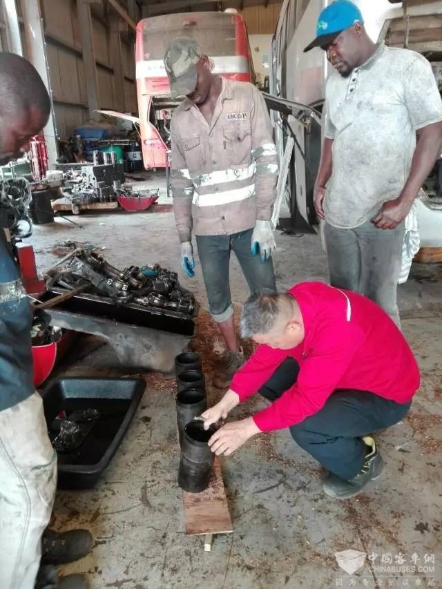 抵达安哥拉的第二天一大早,我就被宇通服务人员拉到了停车场,去对那里的车辆及发动机进行检查。维修保养工作完成后,我来到后面空旷的停车场,蓝天白云的映衬下,看着一列列停放的整齐划一的宇通客车,旅途的疲倦顿觉轻了不少,心里暗想:如果是因为我的服务被客户认可,为公司争取到新的客车订单,那该是多么美妙的事情!咱可一定要好好干!