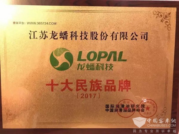 2017年7月17-18日,由南京润道主办的“2017中国润滑油品牌峰会”在江苏无锡隆重召开,300多家润滑油企业,400余位精英齐聚一堂,畅谈市场、探讨未来。在18日晚举行的颁奖环节中,龙蟠润滑油荣获组委会颁发的“十大民族品牌”称号,龙蟠科技董事长石俊峰荣获“2017行业领袖”称号。