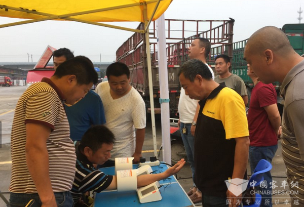 在互动环节中,邓禄普为此次活动准备了丰厚礼品,现场观众积极参与,热情持续高涨。一直以来,邓禄普都将“安全驾驶”作为品牌传播的主线,致力于提高司机的安全意识、培养安全驾驶习惯。活动中,邓禄普卡客车轮胎技术人员介绍轮胎养护常识,主持人就大家关心的安全行车问题展开趣味问答,强化安全驾驶理念。同时,邓禄普还将健康关怀作为此次活动的一大亮点,通过免费的体检项目,让卡客车司机了解自己的身体状态,也号召司机朋友们在忙碌之余给予自身更多关爱。