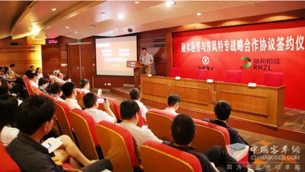 签约仪式上,战略合作的四方代表分别发言。东风特专总经理李保才介绍了新能源汽车的发展历程,回顾了与融和租赁开展合作的精彩瞬间,对“充换并行+中央厨房式换电”的新能源汽车运营模式,表示了高度认同,并对未来的合作充满期待。