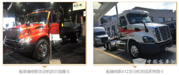 康明斯动力应用于许多商用车客户。本次参加展会的纳威斯达旗下万国(International)、戴姆勒旗下的福莱纳(Freightliner)等众多车型就应用了康明斯的动力产品。