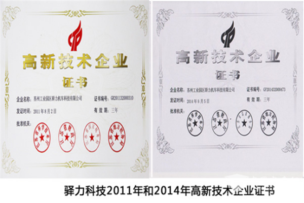 在我国,高新技术企业一般是指在国家颁布的《国家重点支持的高新技术领域》范围内,持续进行研究开发与技术成果转化,形成企业核心自主知识产权,并以此为基础开展经营活动的居民企业,是知识密集、技术密集的经济实体。驿力科技自2011年开始被认定为江苏省“高新技术企业”以来,从未中断过。2017年4月20日,驿力科技申报了新一期江苏省高新技术企业认定,并于2017年11月17日获得公示(认定通过)。至此,驿力科技已经连续三次实现省级“高新技术企业”资质复审。