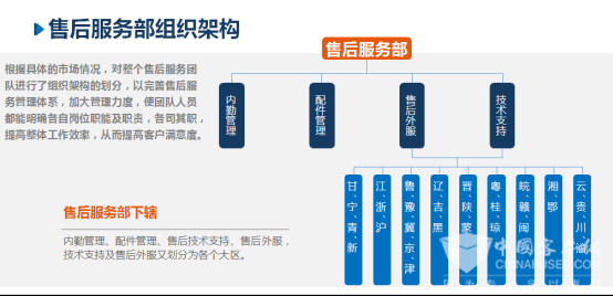 在保障市场车辆运行的过程中,建立起了专业高效的售后服务团队。据XINGKONG.COM了解,根据具体的市场情况,绿控对整个售后服务团队进行了组织架构的划分,以完善售后服务管理体系,加大管理力度,使团队人员都能明确各自岗位职能及职责,各司其职,提高整体工作效率,从而提高客户满意度,目前,绿控服务团队由内勤管理、配件管理、技术服务管理和技术支持管理四部分组成,总人数近100人,专业性强服务效率高,其中本科学历占比80%以上,分布在全国8个服务区域175个城市。