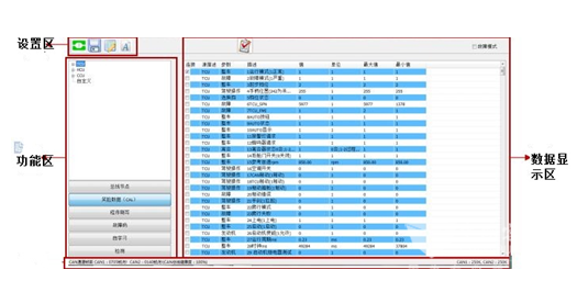 杨军还表示,为提供高效、快捷的服务,针对产品的使用特点,绿控自行开发了一套专用的诊断工具,通过与OBD诊断接口连接整车CAN网络进行故障诊断及总线数据采集,并使用与之相配套的专用软件进行操作(见下图)。