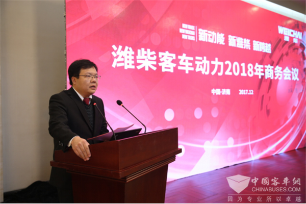 潍柴客车动力销售公司总经理刘国栋对客车行业形势进行分析,并公布2018年潍柴国六产品。