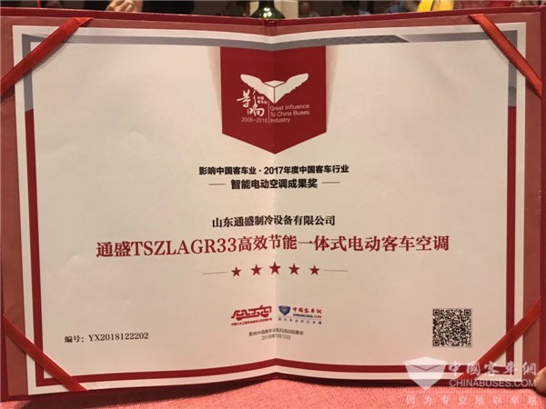 用实力赢未来|山东通盛空调荣获2017年度智能电动空调成果”奖