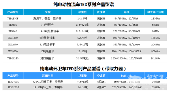 以永磁同步电机来驱动,AMT自动变速器与电机同轴连接;利用变速器调速增扭的特性,实现匹配较小电机达到直驱大电机的效果;同时,让车辆具有更强的适应性和更高的效率。2017年该系列产品的销量超过10000台,得到客户的广泛认可。