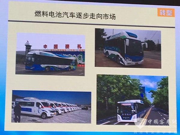 万钢部长在与会PPT上着重介绍了宇通和福田生产的燃料电池客车。据介绍,上述两家车企生产的氢燃料电池大巴已于2017年完成了张家口地区区域测试,并在近日中标张家口公交车辆采购项目,共计74台氢燃料电池客车,将于2018年上半年开始投入使用。
