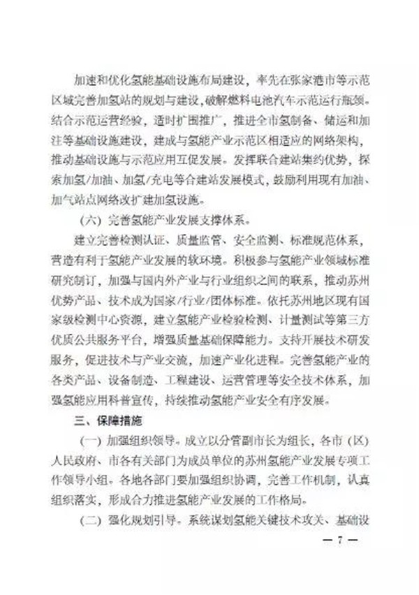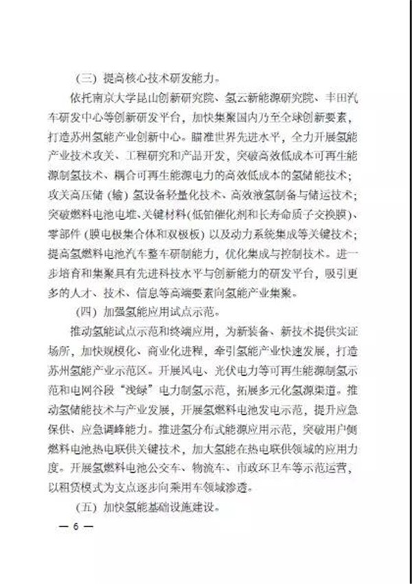 文件指出,加快发展氢能产业,是我国应对全球气候变化、保障国家能源供应安全和实现可持续发展的战略选择,是苏州贯彻落实党的十九大精神和习近平总书记视察江苏重要讲话精神、推动高质量发展的必然要求,是超前布局先导产业、抢占能源技术制高点的重要举措,是发挥苏州制造综合优势、建设具有国际竞争力的现代产业名城的关键抓手,是探索能源变革驱动城市全面发展、建设国际能源变革发展典范城市的重要实践。并提出,到2020年,氢能产业链年产值突破100 亿元,建成加氢站近10 座,推进公交车、物流车、市政环卫车等示范运营,氢燃料电池汽车运行规模力争达到800 辆;到2025年,氢能产业链年产值突破500 亿元,建成加氢站近40 座,公交车、物流车、市政环卫车和乘用车批量投放,运行规模力争达到10000 辆。