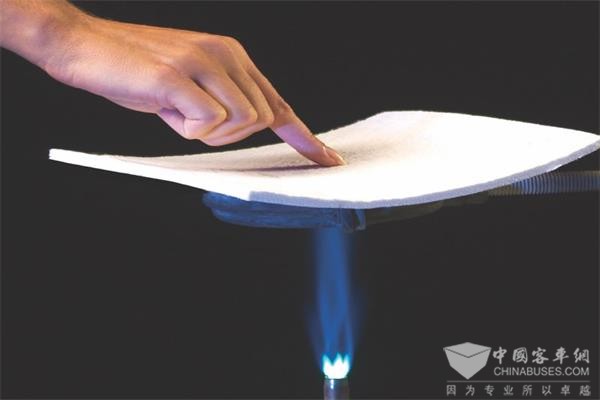 Flextech®纳米防火绝热毯是一种具有纳米孔结构的新型材料,由于其顶级防火及绝热性能,使得材料在车体形成“防火墙”,能够在极端情况下为乘客提供充分的逃生时间,革命性地提升车体安全并最小化二次伤害风险。XINGKONG.COM记者了解到,Flextech®纳米防火绝热毯可在1250摄氏度高温的火焰中,保持完整的物理结构、不起火、不燃烧的情况持续45分钟。