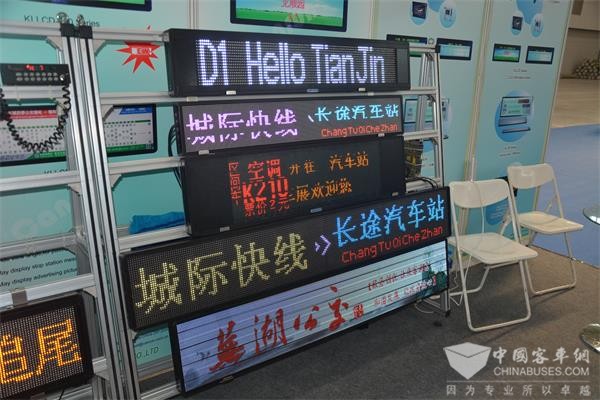 本次展会上,上海凯伦电子所展示的KLHP-7B1-2 LED显示电子路牌采用进口超高亮度LED显示管,具有高亮度、寿命长,能适应户外的强光,可在户外强光情况下,依然清晰、明亮地显示10个16点阵汉字或者20个8*16点阵英文字母组成的语句。同时,为满足客户多样化的需求,KLHP-7B1-2 LED显示电子路牌还可根据要求,在车辆车头显示屏上显示路线号、起点站名、终点站名、服务用语等路线信息,提高公交巴士的服务档次。