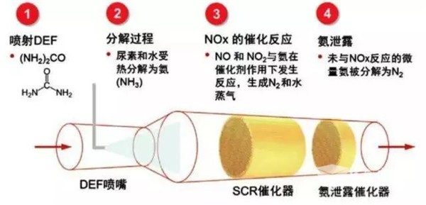 2、这个反应需要向排气中喷入柴油机排气处理液DEF(一种易于分解为氨的氮化合物);