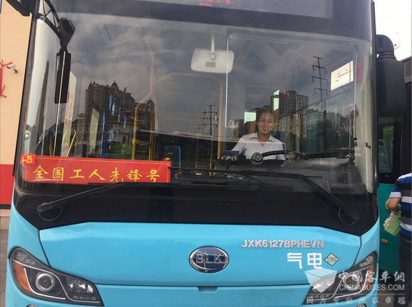25路女驾驶员喻琴是一位90后年轻妈妈,她很喜欢这份工作,也喜欢和同事相处的氛围,更喜欢她驾驶的这辆气电混动新能源公交车。
