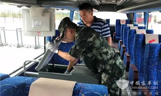 边检人员对客车进行查验中通客车本次销往俄罗斯的豪华大巴均匹配东风康明斯的ISL375 50发动机,满足欧五排放标准,赋予了中通客车高稳定性,高动力性,低油耗的特性,征服了挑剔的俄罗斯客户。