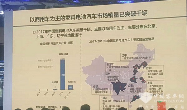 万钢强调,中国燃料电池汽车发展目前已进入新的阶段。2017年,中国燃料电池汽车产销实现1098辆,分布在北京、上海、广东、辽宁等产业示范区。同时,氢能基础设施建设也在加速推进,截至去年底,全国运行的加氢站已超过10座,在建的还有20多座。