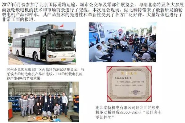 湖北泰特于2016年耗资5500万欧元收购了荷兰e-traction公司。荷兰e-traction公司成立于1981年,专注于商用车轮毂电机的研发及应用,至今已超过36年,e-traction公司目前拥有200余项专利,包括100余项发明专利。