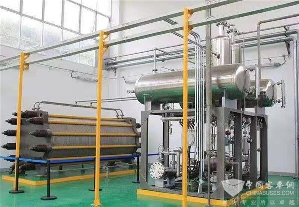 厂房建设方面,厂房为甲类厂房,采用单层建筑结构,其耐火等级、层数及防火分区的面积严格满足规范要求。如房间上部空间通风良好,顶棚内表面平整,避免死角;厂房顶部最高点设置无动力通风机和轴流风机等自然或强制换气设备;房间的自然通风换气次数≥3次/h,排风装置换气次数≥12次/h,并与氢气检漏装置联锁。